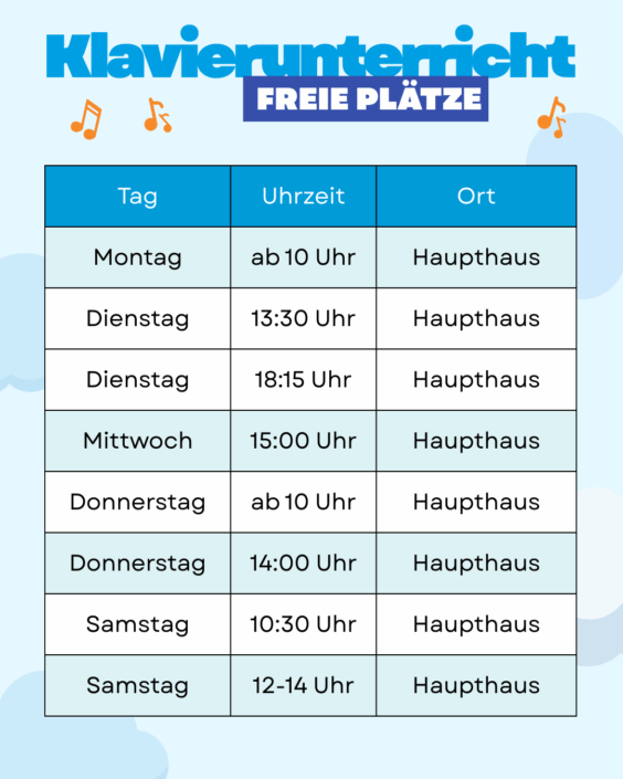 Schau regelmäßig vorbei, um keine Neuigkeiten zu verpassen. Wir aktualisieren unsere Kursangebote laufend, sodass du immer die Chance hast, neue musikalische Wege zu gehen und Teil unserer lebendigen Musikgemeinschaft zu werden.