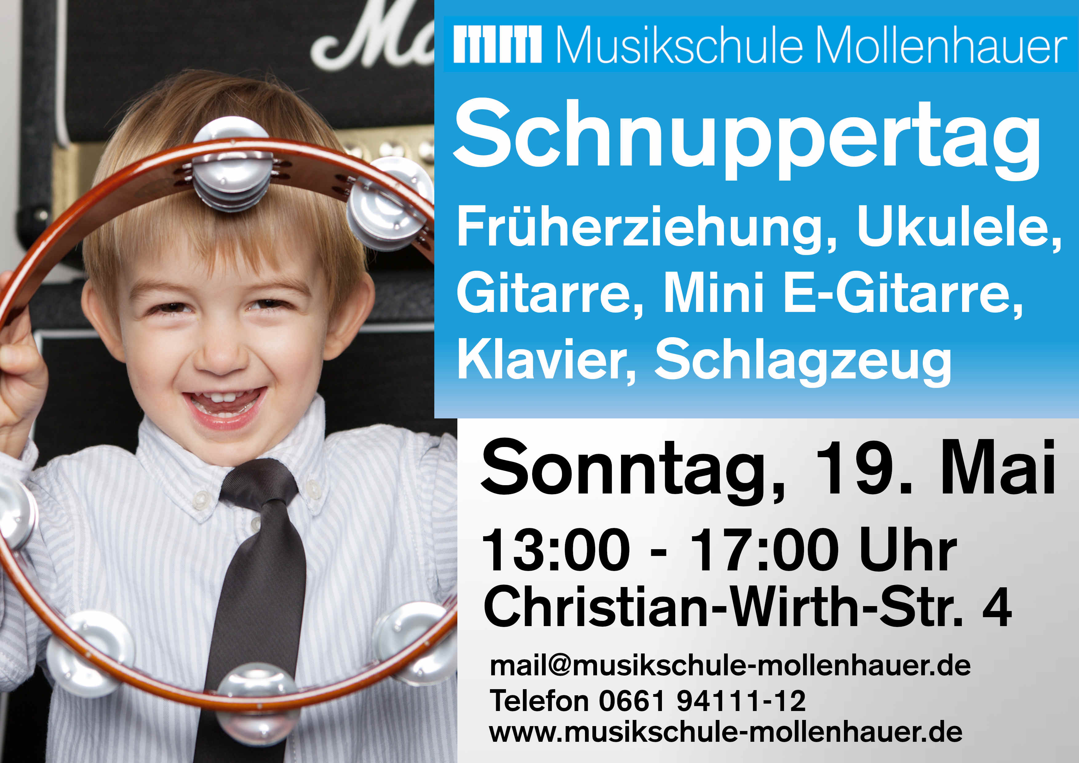 Am Sonntag, den 19. Mai 2019findet ein Schnuppertag in der Musikschule Mollenhauer, Christian-Wirth-Str. 4in Fulda statt.